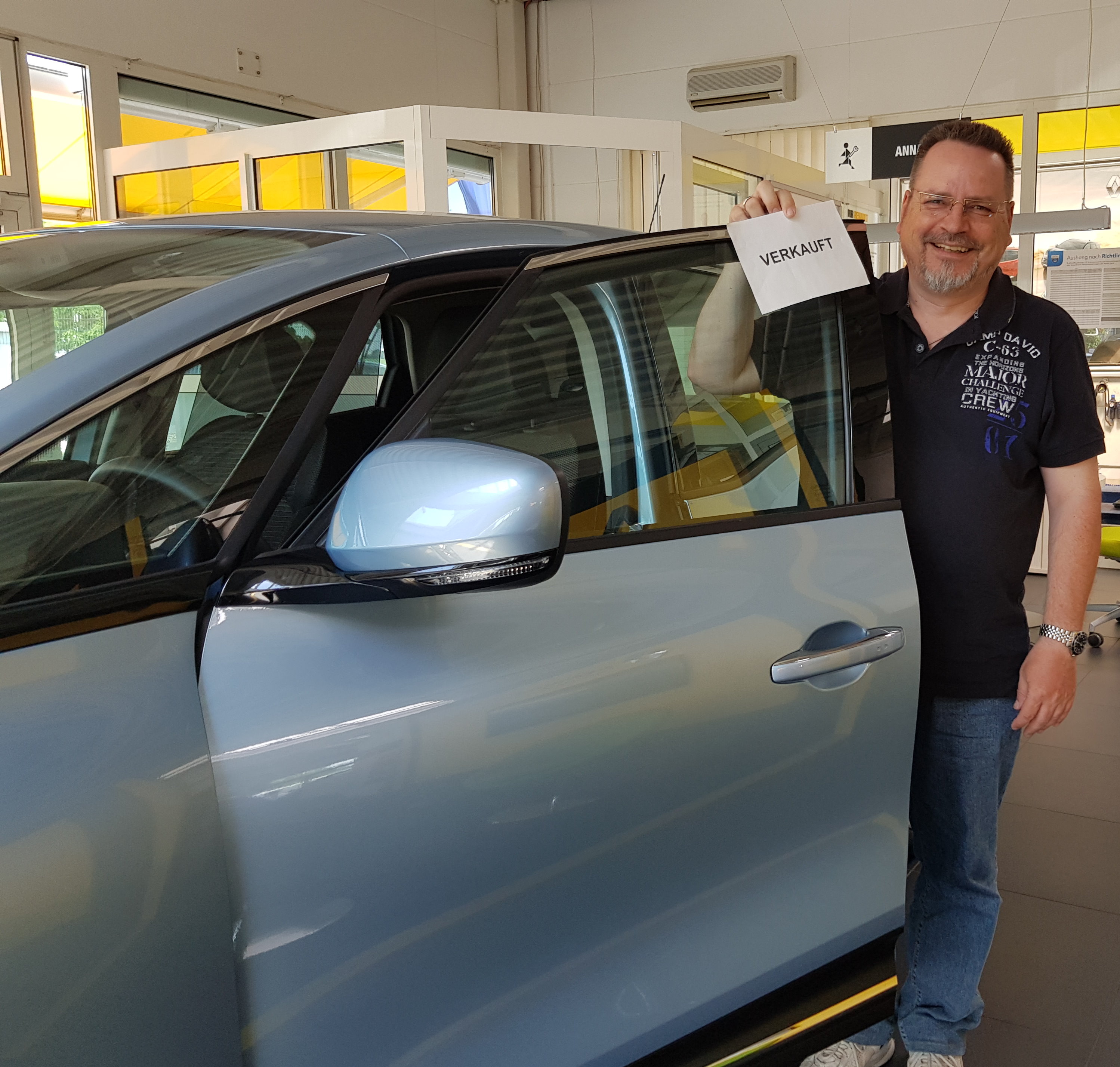 Aus dem Leben meines Renault Scénic: Wollte ich schon immer einen Renault Scénic haben? Ganz klar: „NEIN“! Eigentlich war ich auf der Suche nach einem Allradauto mit Automatik und hatte in Richtung Mazda CX5, Dacia Duster, Subaru Outback, Subaru Forester, Jeep Grand Cherokee, Jeep Compass, Mitsubishi ASX oder Mitsubishi Eclipse Cross Ausschau gehalten. Auch einen Citroen C5 hatte ich in Erwägung gezogen, einen der letzten Fahrzeuge mit HydroActive III Federung. Auf unserem Zug durch die Autohäuser sind wir dann quasi über unseren Renault gestolpert. Der Verkäufer hat es uns dann leicht gemacht, uns für den Scénic zu entscheiden. Bis ich einen Namen für meinen Scénic habe, nenne ich ihn einfach Scénic. Nach meinen Recherchen wurde mein Scénic in Frankreich im Werk in Douai gebaut. Seinen ersten Einsatz hat er als Vorführwagen im Berliner Autohaus Olbrich & Söhne,wo meine Frau und ich ihn auf der Suche nach einem Dacia Duster gefunden haben. Da die Zulassung in Berlin lange, ja sehr lange dauert, muss ich jetzt noch ca. drei bis vier Wochen auf meinen Scénic warten. Dafür habe ich in der Zwischzeit schonmal etwas Zubehör geordert (Gummifussmatten für vorne und hinten, sowie für den Gepäckraum, Windabweiser für die vorderen Fenster sowie eine Schutzleiste aus Edelstahl für die hintere Stoßstange). Was ich sonst noch brauche – oder gerne hätte – wird die Zeit zeigen. Jetzt bin ich erstmal neugierig auf das Fahren! Am 03.07.2018 war es endlich soweit (obwohl die Fahrzeugdokumente schon am 27.06.2018 von der Zulassungsstelle abgestempelt wurden), wir durften unseren Scénic beim Händler abholen. Hier wartete er schon unter einem Baldachin, es war ein sehr schöner Anblick. Doch zunächst erstmal den ganzen Papierkram erledigen und das Zubehör und die Einlagerung der Winterreifen bezahlen. Es gab zwar keinen Sekt oder Kaffee, aber dafür eine zusätzliche Hülle für die Keycard und eine ausführliche Übergabe des Fahrzeugs. Über das R-Link 2 läßt sich soviel einstellen und konfigurieren, da brauche ich bestimmt Tage für, bis alles für mich perfekt eingestellt ist.